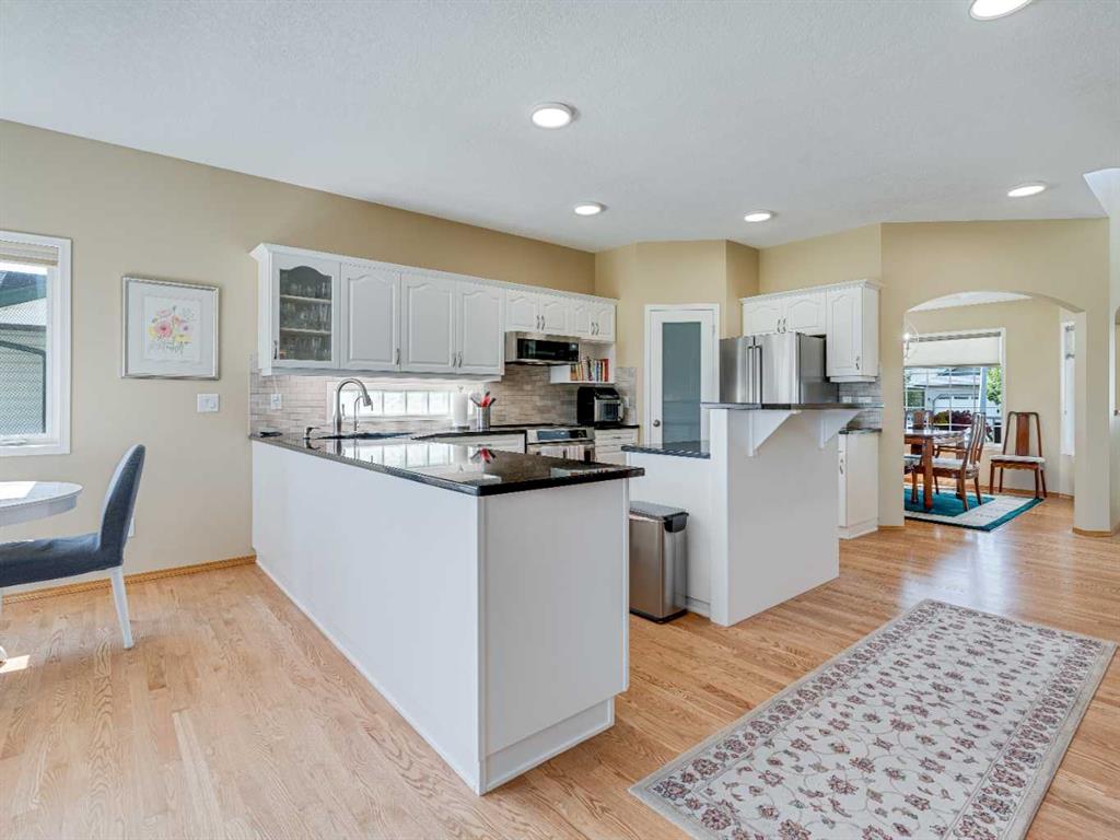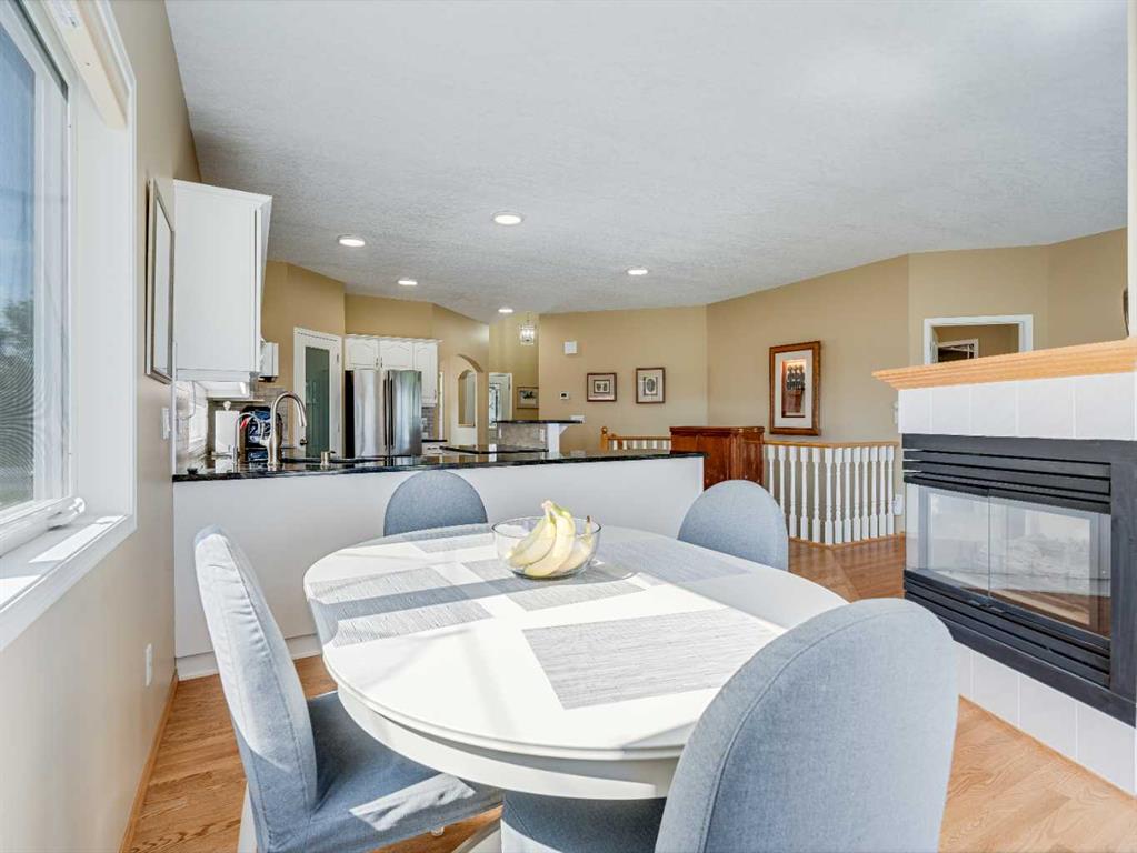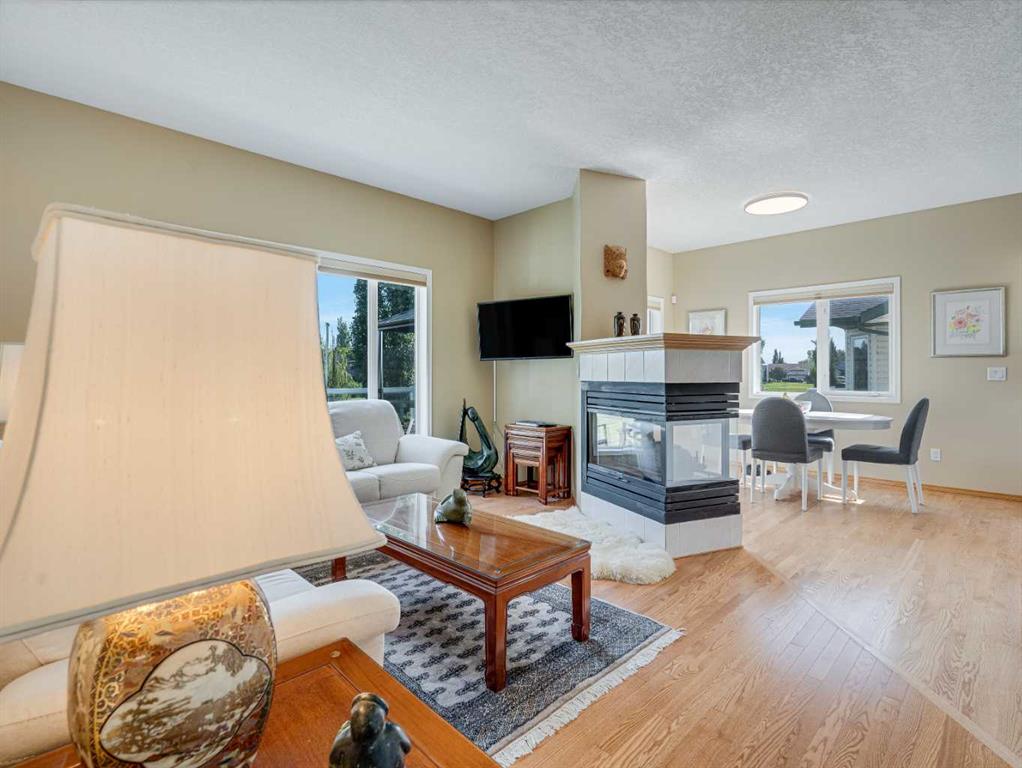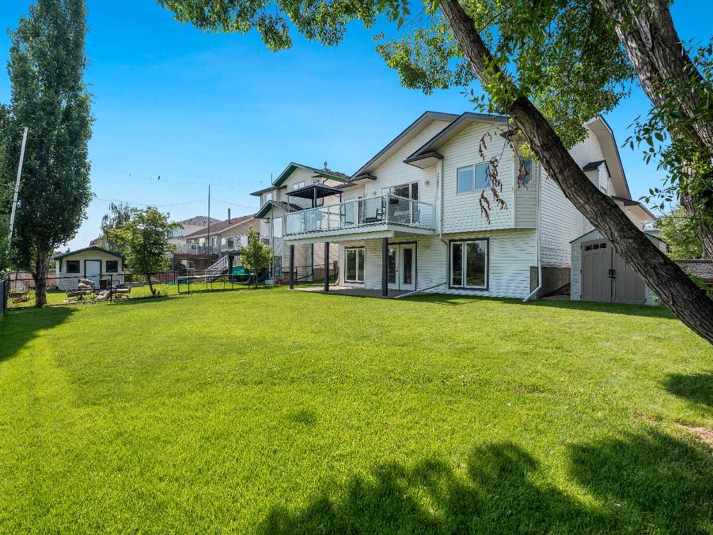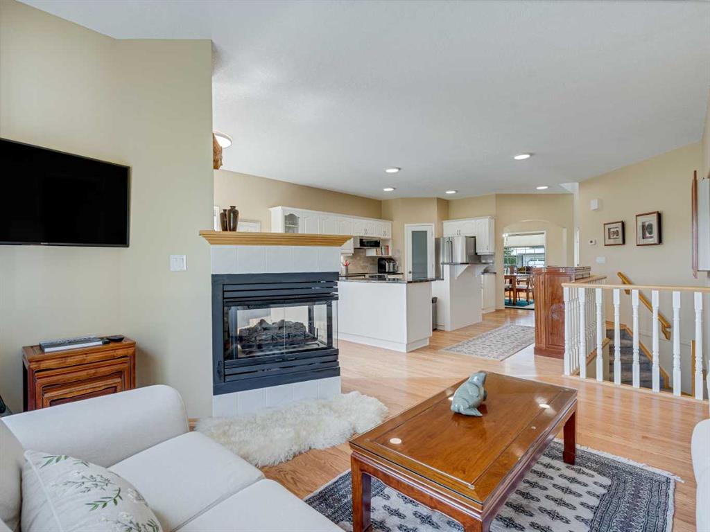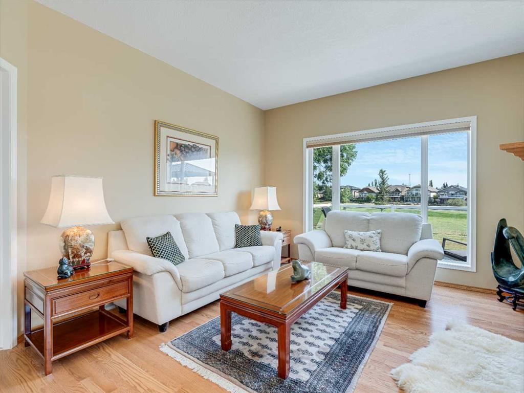 4 BEDROOMS | 2 1/2 BATHROOMS | WALKOUT BUNGALOW | 2,744 SQFT OF LIVING SPACE | DOUBLE ATTACHED GARAGE | RV PARKING | BACKING ONTO HIGHWOOD GOLF COURSEWelcome to this exceptional walkout bungalow in the heart of High River, offering over 2,700 sqft of beautifully maintained living space with 4 bedrooms, 2.5 bathrooms, and panoramic views backing onto the Highwood Golf Course. Located on a generously sized lot, this home offers privacy, elegance, and functionality. As you enter, you’re greeted by a spacious foyer and an adaptable formal dining room, perfect for entertaining or easily converted into a bright main floor office or den. The open-concept living area features oak hardwood flooring, vaulted ceilings, and a stunning double-sided gas fireplace. Expansive picture windows in the living room frame unobstructed southern views of the golf course, creating a bright and inviting atmosphere. The chef-inspired kitchen includes quartz countertops, an island with breakfast bar, a new 30″ induction stove, a new microwave hood fan, a new garburator, a pantry, and a reverse-osmosis water system for all of your drinking water. The neighbouring breakfast nook has access to the upper deck with Dura Deck finish and bbq gas hookup, making it ideal for morning coffee or summer barbecues. The main level also features a spacious primary retreat with new carpet, a walk-in closet and spa-like 4-piece ensuite, complete with jetted soaker tub and separate shower. A second bedroom, convenient 2-piece bath, and laundry room with brand new Electrolux front loading steam washer and dryer with pedestals complete this level. Downstairs, the fully developed walkout basement offers a large recreation space with a cozy stone-surround gas fireplace, two additional bedrooms, a stylish 3-piece bathroom with a California shower, and ample storage. Step outside to the lower patio and take in the beautifully landscaped yard featuring in-ground sprinklers, mature trees, and peaceful views of the course and natural wildlife. Additional features include remote hunter douglas blinds throughout, central air conditioning (2022), a tankless hot water system (2024), water softener (2024), sump pump, alarm system, attached double garage, parking for up to 6 vehicles, RV parking pad, and a separate shed for extra storage. This is a rare opportunity to own a meticulously maintained walkout bungalow in a premier golf course location. You will also enjoy being close to schools, parks, and walking paths! Book your private showing today!