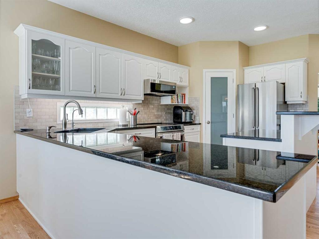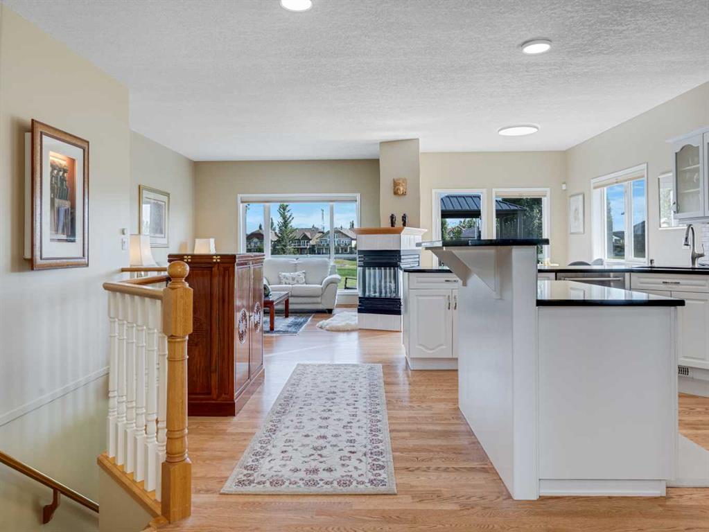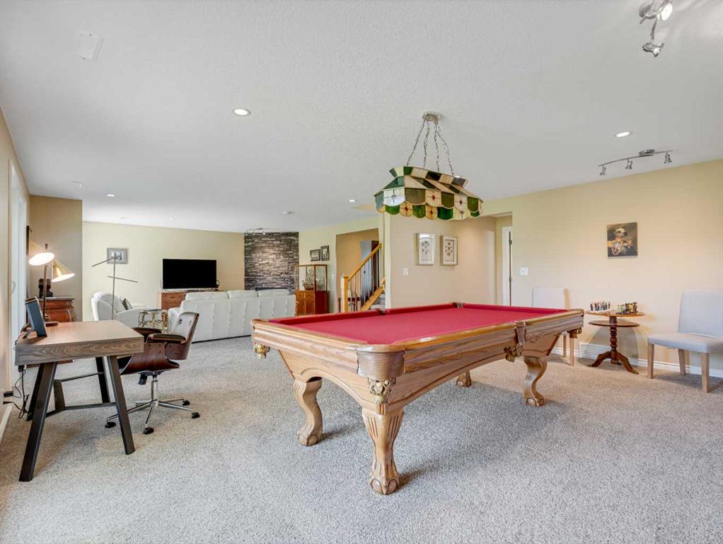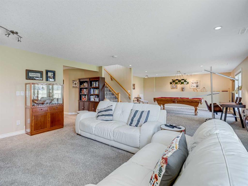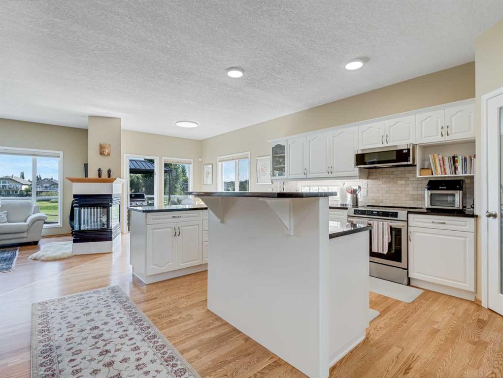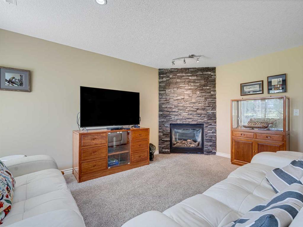 4 BEDROOMS | 2 1/2 BATHROOMS | WALKOUT BUNGALOW | 2,744 SQFT OF LIVING SPACE | DOUBLE ATTACHED GARAGE | RV PARKING | BACKING ONTO HIGHWOOD GOLF COURSEWelcome to this exceptional walkout bungalow in the heart of High River, offering over 2,700 sqft of beautifully maintained living space with 4 bedrooms, 2.5 bathrooms, and panoramic views backing onto the Highwood Golf Course. Located on a generously sized lot, this home offers privacy, elegance, and functionality. As you enter, you’re greeted by a spacious foyer and an adaptable formal dining room, perfect for entertaining or easily converted into a bright main floor office or den. The open-concept living area features oak hardwood flooring, vaulted ceilings, and a stunning double-sided gas fireplace. Expansive picture windows in the living room frame unobstructed southern views of the golf course, creating a bright and inviting atmosphere. The chef-inspired kitchen includes quartz countertops, an island with breakfast bar, a new 30″ induction stove, a new microwave hood fan, a new garburator, a pantry, and a reverse-osmosis water system for all of your drinking water. The neighbouring breakfast nook has access to the upper deck with Dura Deck finish and bbq gas hookup, making it ideal for morning coffee or summer barbecues. The main level also features a spacious primary retreat with new carpet, a walk-in closet and spa-like 4-piece ensuite, complete with jetted soaker tub and separate shower. A second bedroom, convenient 2-piece bath, and laundry room with brand new Electrolux front loading steam washer and dryer with pedestals complete this level. Downstairs, the fully developed walkout basement offers a large recreation space with a cozy stone-surround gas fireplace, two additional bedrooms, a stylish 3-piece bathroom with a California shower, and ample storage. Step outside to the lower patio and take in the beautifully landscaped yard featuring in-ground sprinklers, mature trees, and peaceful views of the course and natural wildlife. Additional features include remote hunter douglas blinds throughout, central air conditioning (2022), a tankless hot water system (2024), water softener (2024), sump pump, alarm system, attached double garage, parking for up to 6 vehicles, RV parking pad, and a separate shed for extra storage. This is a rare opportunity to own a meticulously maintained walkout bungalow in a premier golf course location. You will also enjoy being close to schools, parks, and walking paths! Book your private showing today!