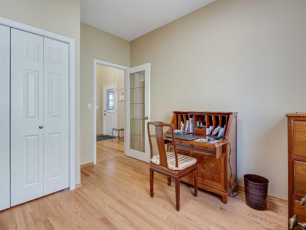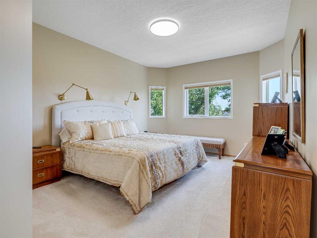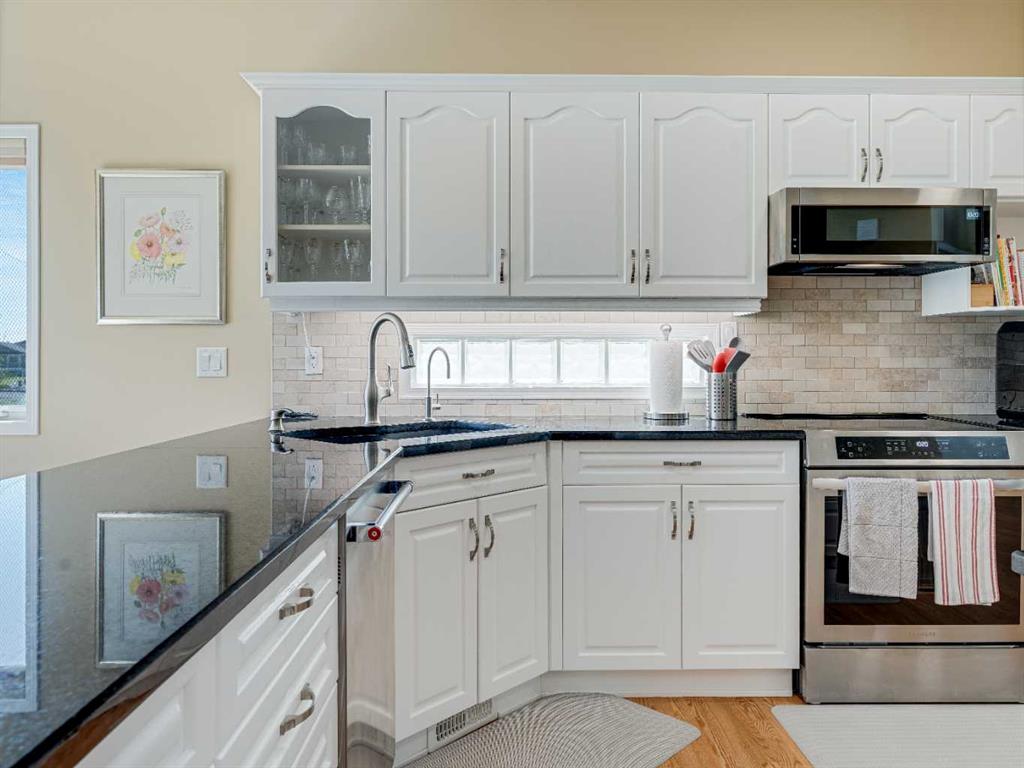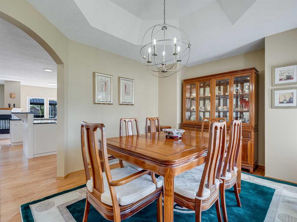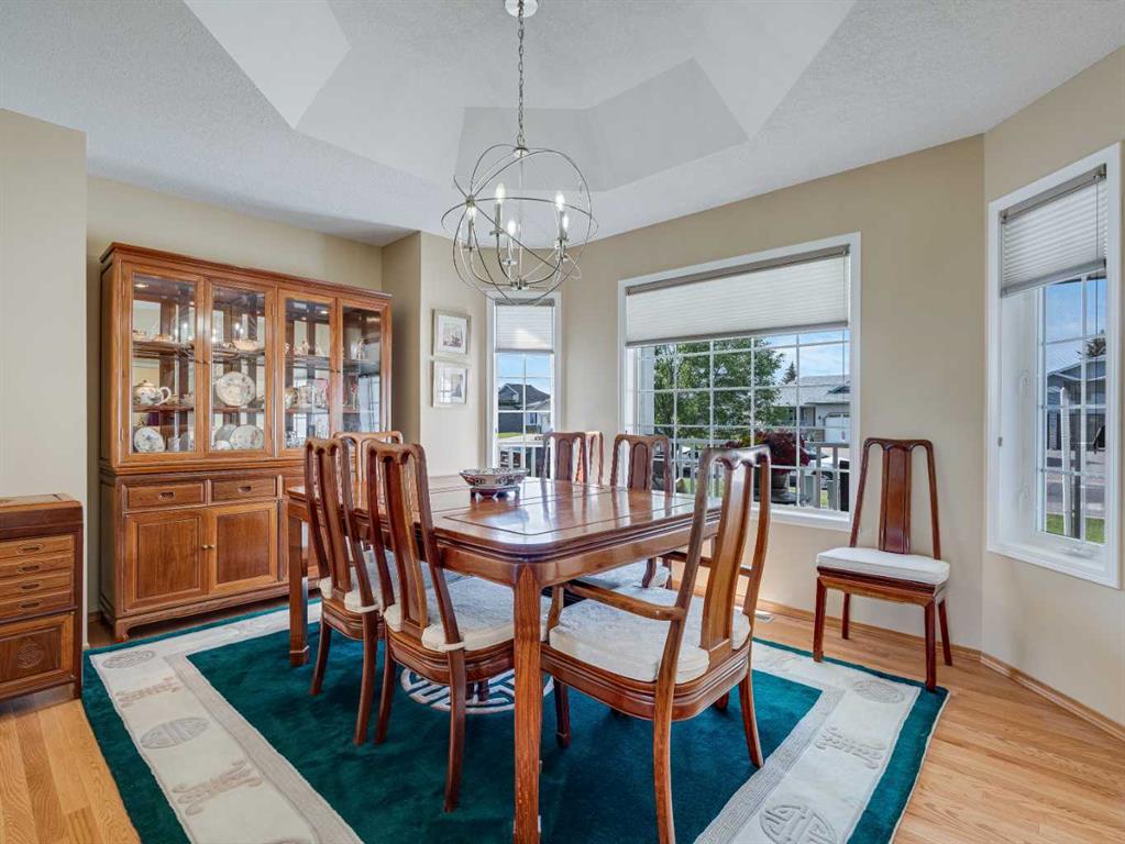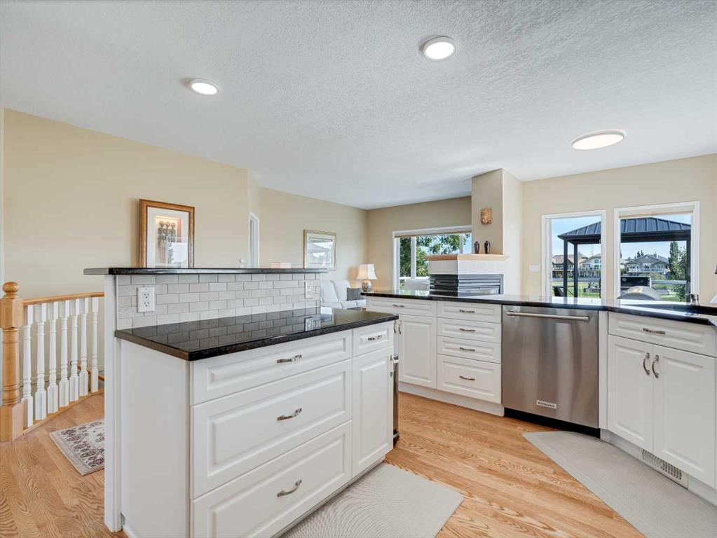 4 BEDROOMS | 2 1/2 BATHROOMS | WALKOUT BUNGALOW | 2,744 SQFT OF LIVING SPACE | DOUBLE ATTACHED GARAGE | RV PARKING | BACKING ONTO HIGHWOOD GOLF COURSEWelcome to this exceptional walkout bungalow in the heart of High River, offering over 2,700 sqft of beautifully maintained living space with 4 bedrooms, 2.5 bathrooms, and panoramic views backing onto the Highwood Golf Course. Located on a generously sized lot, this home offers privacy, elegance, and functionality. As you enter, you’re greeted by a spacious foyer and an adaptable formal dining room, perfect for entertaining or easily converted into a bright main floor office or den. The open-concept living area features oak hardwood flooring, vaulted ceilings, and a stunning double-sided gas fireplace. Expansive picture windows in the living room frame unobstructed southern views of the golf course, creating a bright and inviting atmosphere. The chef-inspired kitchen includes quartz countertops, an island with breakfast bar, a new 30″ induction stove, a new microwave hood fan, a new garburator, a pantry, and a reverse-osmosis water system for all of your drinking water. The neighbouring breakfast nook has access to the upper deck with Dura Deck finish and bbq gas hookup, making it ideal for morning coffee or summer barbecues. The main level also features a spacious primary retreat with new carpet, a walk-in closet and spa-like 4-piece ensuite, complete with jetted soaker tub and separate shower. A second bedroom, convenient 2-piece bath, and laundry room with brand new Electrolux front loading steam washer and dryer with pedestals complete this level. Downstairs, the fully developed walkout basement offers a large recreation space with a cozy stone-surround gas fireplace, two additional bedrooms, a stylish 3-piece bathroom with a California shower, and ample storage. Step outside to the lower patio and take in the beautifully landscaped yard featuring in-ground sprinklers, mature trees, and peaceful views of the course and natural wildlife. Additional features include remote hunter douglas blinds throughout, central air conditioning (2022), a tankless hot water system (2024), water softener (2024), sump pump, alarm system, attached double garage, parking for up to 6 vehicles, RV parking pad, and a separate shed for extra storage. This is a rare opportunity to own a meticulously maintained walkout bungalow in a premier golf course location. You will also enjoy being close to schools, parks, and walking paths! Book your private showing today!
