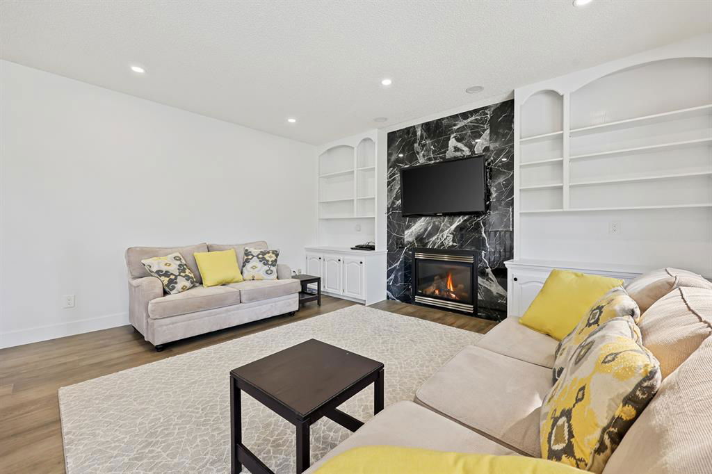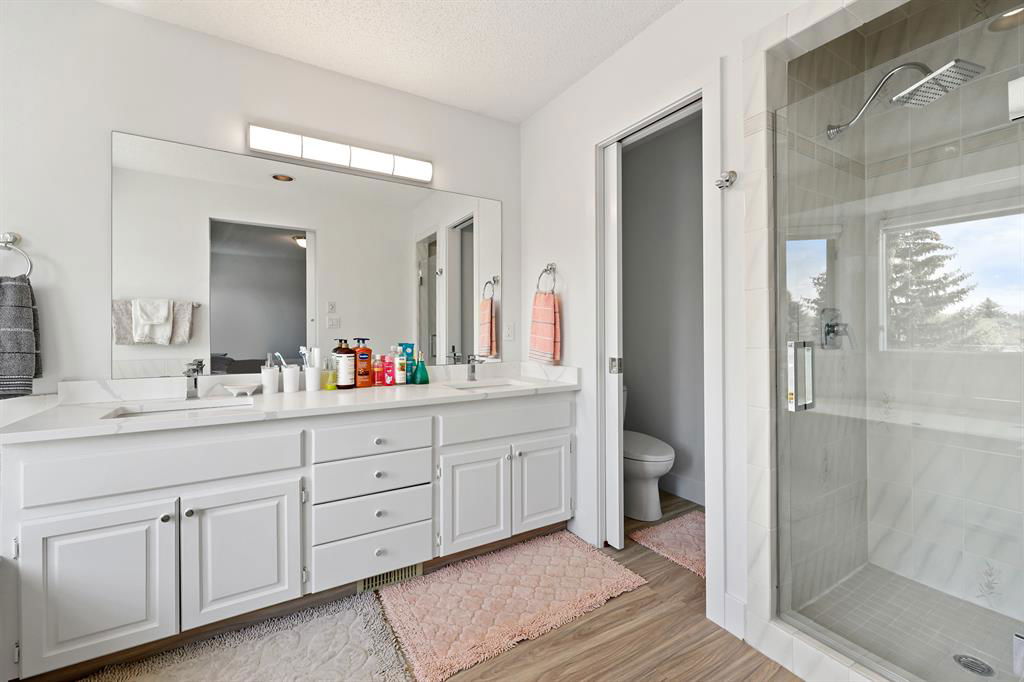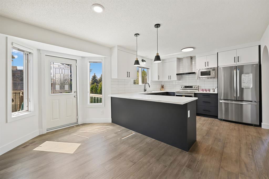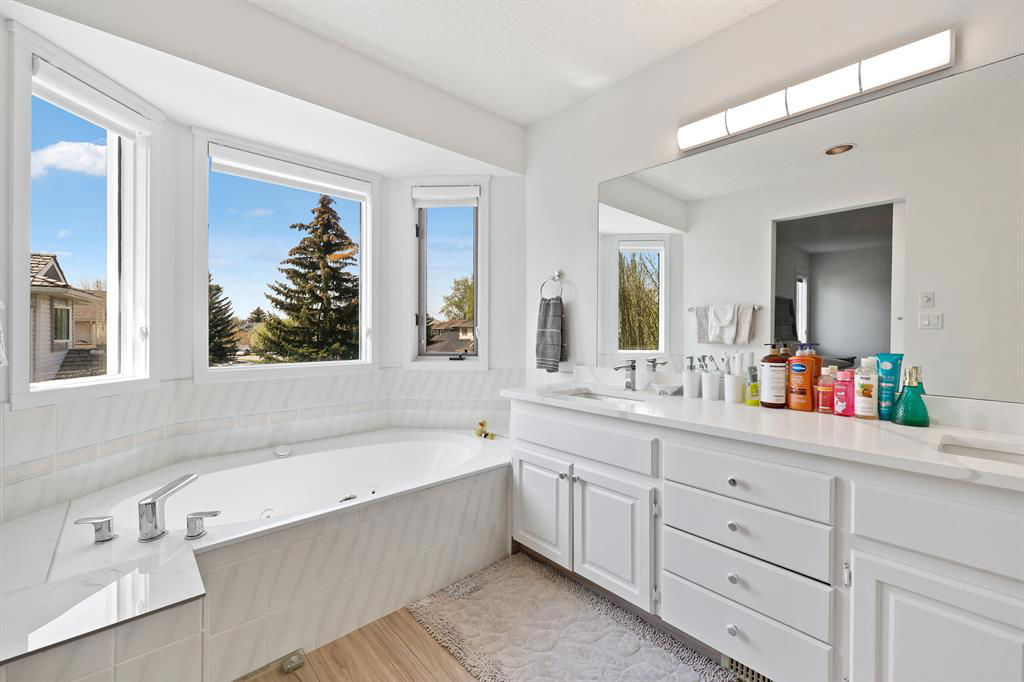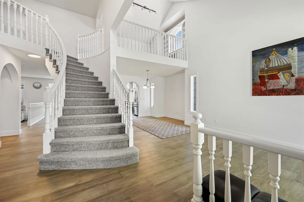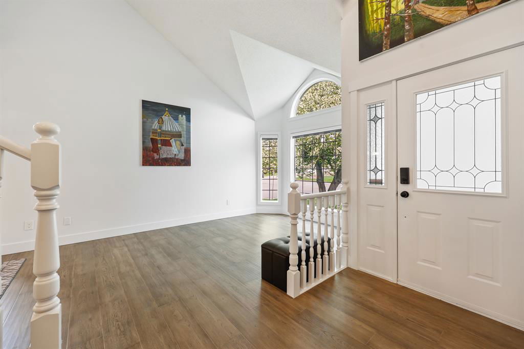 JUST Renovated & located in one of Calgary’s most hidden gems at Diamond Cove, SE. This exclusive, quiet & private Community, just off Bow Bottom Trail is perfect for a family looking for location, house size, functionality and it’s move-in ready tomorrow! Enjoy over 2000 sq ft above ground + a fully finished lower level. The kitchen has been opened up to the large living area with stunning gas fireplace. New 2 tone custom Cabinetry, quartz counters + sit up island, new appliances, subway backsplash & just off the informal dining room which leads to an open concept living area, overlooking the front yard. As you enter you are greeted by beautiful, wall-to-wall Engineered hardwood, wide-plank flooring, towering ceiling heights with a large 2pc bath, 2 front closets, and main level laundry located in the mudroom, leading to the oversized, attached double garage. The eye-catching winding staircase brings you up to 3 Bedrooms (both with walk-in closets) a beautifully finished 4pc bathroom and a large master bedroom with walk-in closet, 5pc ensuite, w/Jacuzzi tub, enclosed shower, quartz counters w/ dual sinks + private loo. The upper floor also hosts brand new carpet, a very large, open office with built in desk + custom book shelving. There is loads of natural light filling this lovely home, with a massive, Southwest backyard. Complete with your own covered deck, with new wood surface for BBQ’s while watching over the kids. The lower level is completely finished with a large guest bedroom (needs egress window), 4pc bathroom, large living area with a modern electric fireplace and wet-bar. All the major mechanical has been completed, with a new 100gal tank, Hi Eff furnace, and new plumbing lines to all upgraded services. This is the perfect corner lot, with tons of sunshine and the Fruit & Vegetable gardens have already been planted, along with flowers, and ready for the next gardener to take over. This is a tremendous amount of home for this price bracket. See it today before it’s gone!