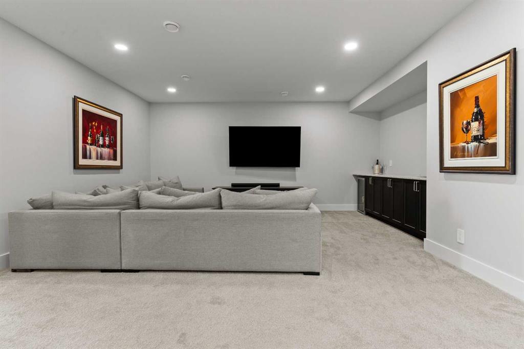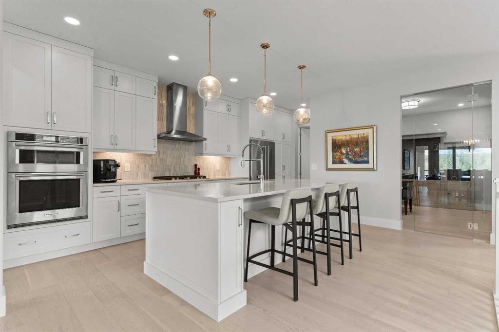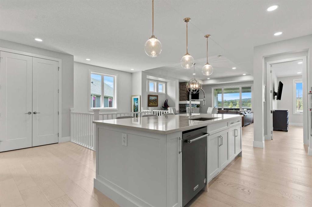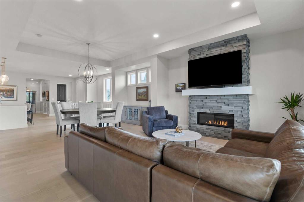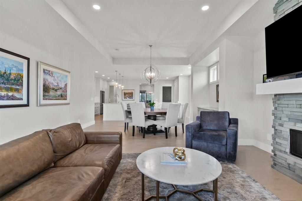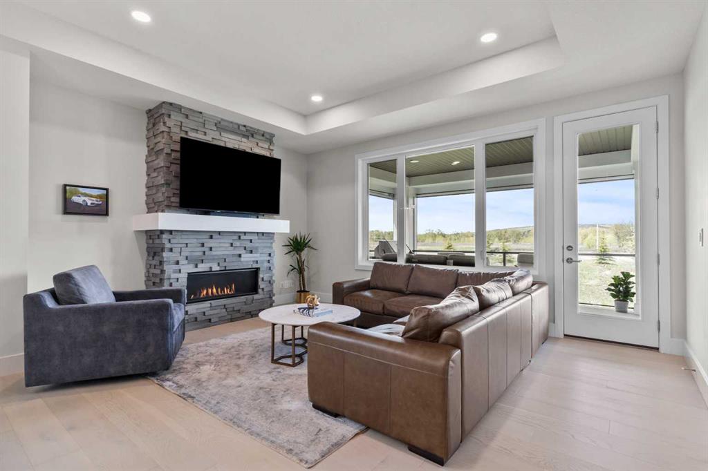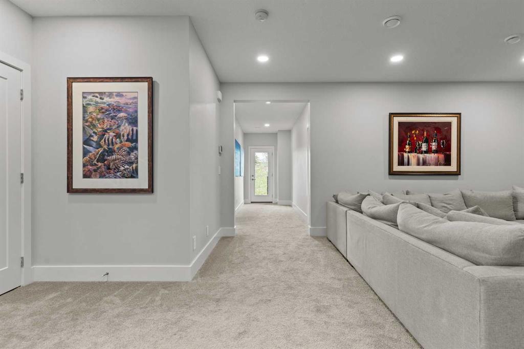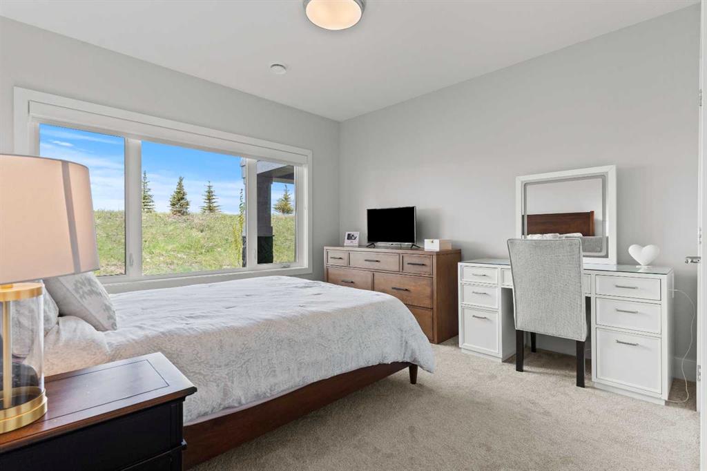 4 BEDROOMS | 2 1/2 BATHROOMS | WALKOUT VILLA | 3,194 SQ FT OF LIVING SPACE | HEATED DOUBLE ATTACHED GARAGE | OPEN LAYOUT | Welcome to this beautifully appointed walkout bungalow in the exclusive community of Swift Creek close to Elbow Valley, offering 3,194 sqft of refined living space with 4 bedrooms and 2.5 bathrooms. Nestled in a quiet cul-de-sac with no neighbours behind, this semi-detached luxury home offers privacy, functionality, and designer touches throughout. The large windows throughout the home bring in an abundance of natural light. The main floor features high ceilings, gorgeous hardwood floors, and a bright open-concept layout. The gourmet kitchen is the focal point of the space with quartz countertops, custom cabinetry, a gas cooktop, double oven, and expansive island, perfect for hosting friends and family. The spacious living room centers around a gas fireplace and flows effortlessly into the dining area and gourmet kitchen. Step outside to the upper composite deck complete with bbq gas line and custom remote controlled privacy blinds, ideal for enjoying the outdoors in comfort and uninterrupted. The primary retreat features automated Hunter Douglas privacy blinds, a generous walk-in closet with built-ins, and a spa-like 5-piece ensuite with heated floors, soaker tub and dual vanity. A stylish powder room, office, and spacious laundry room with storage complete the main floor. Enjoy the convenience of entering through the mudroom off the heated double attached garage. The walkout basement is fully finished and includes a large recreation room with custom built-in wet bar with granite countertop, three additional spacious bedrooms with large closets, a full 4-piece bathroom, and an oversized storage room. Additional highlights include central air conditioning, 62 gallon hot water tank, and sump pump. For convenience, the home also includes hose bibs on the upper deck, lower deck and in the garage. Enjoy the ease of low-maintenance living with condo fees covering all exterior maintenance, snow removal, and lawn care. Located just minutes from Calgary’s west edge, this exceptional home offers the perfect blend of luxury, tranquility, and convenience. Book your showing today!