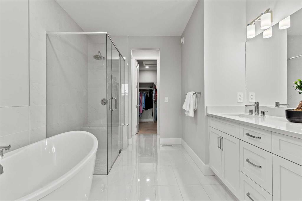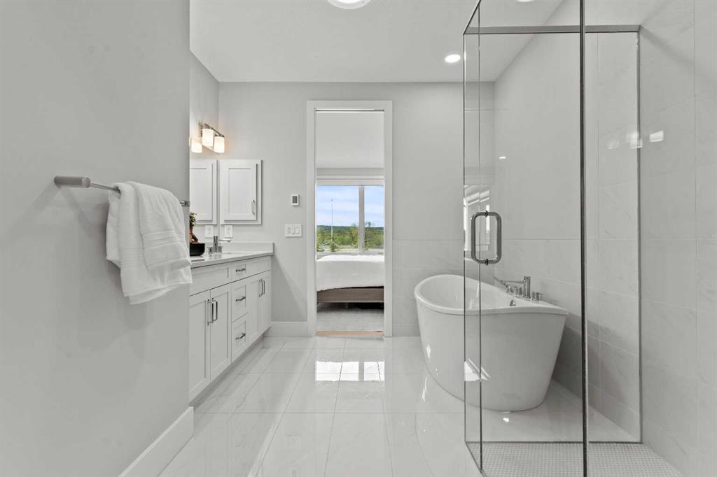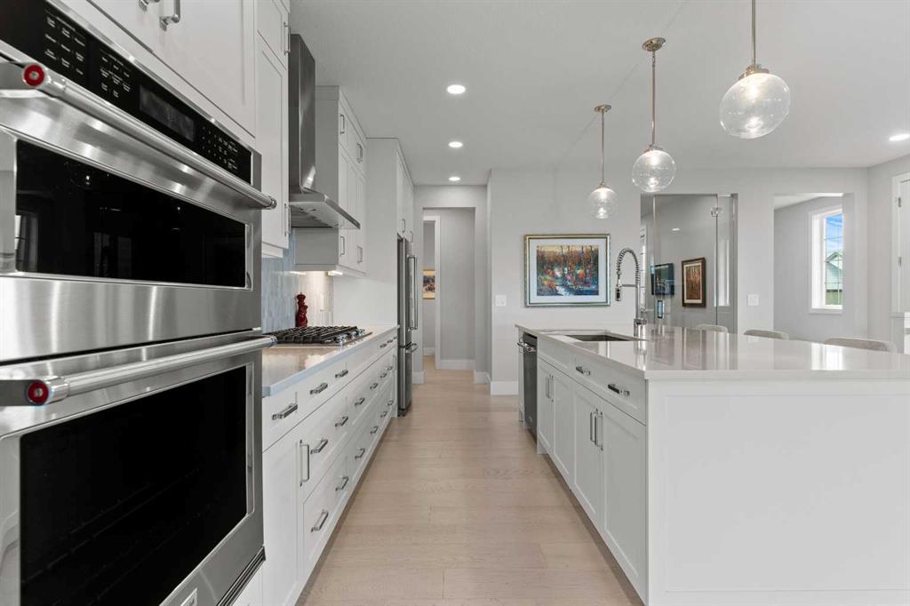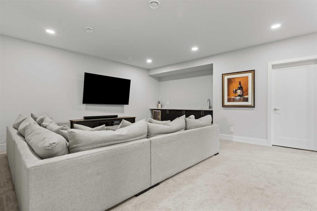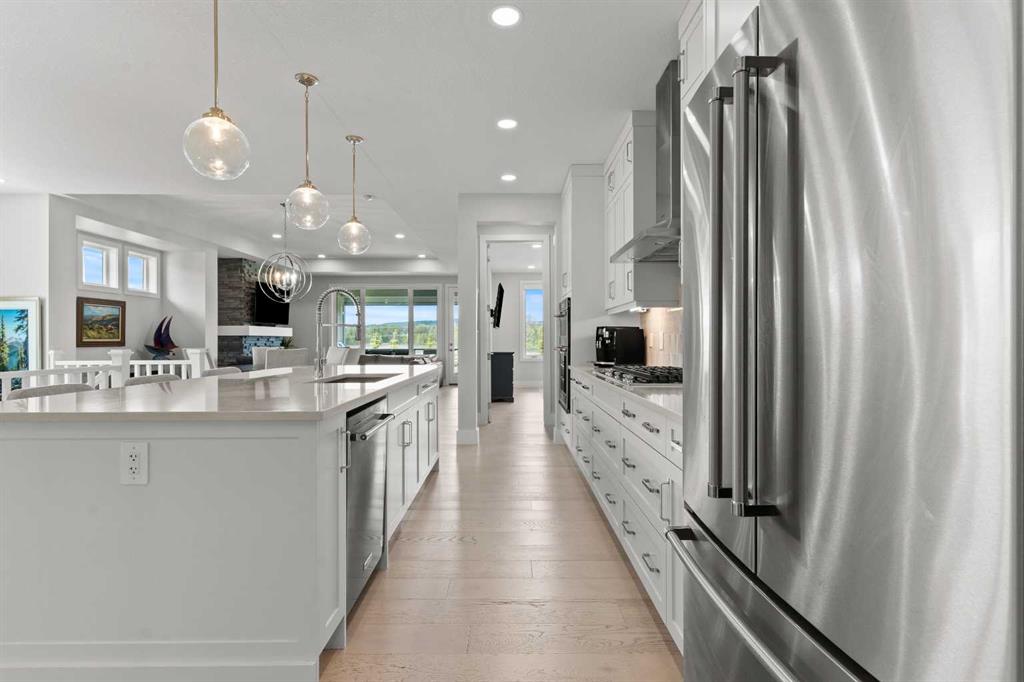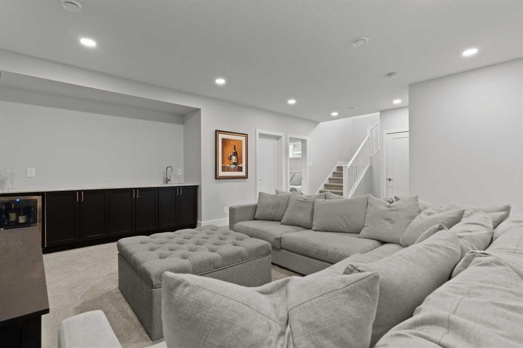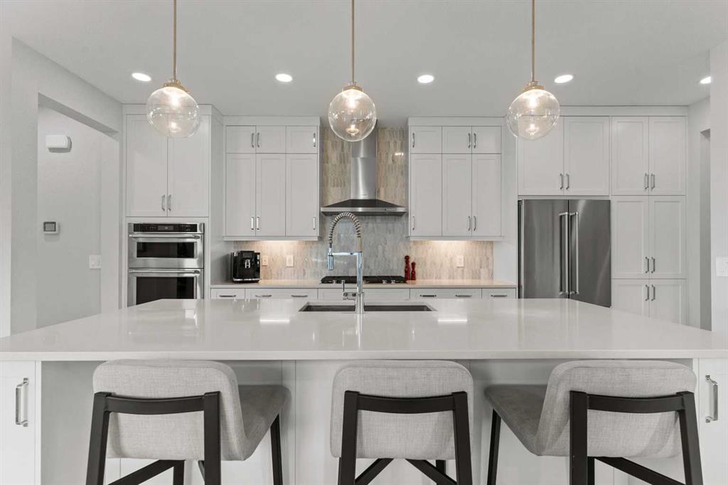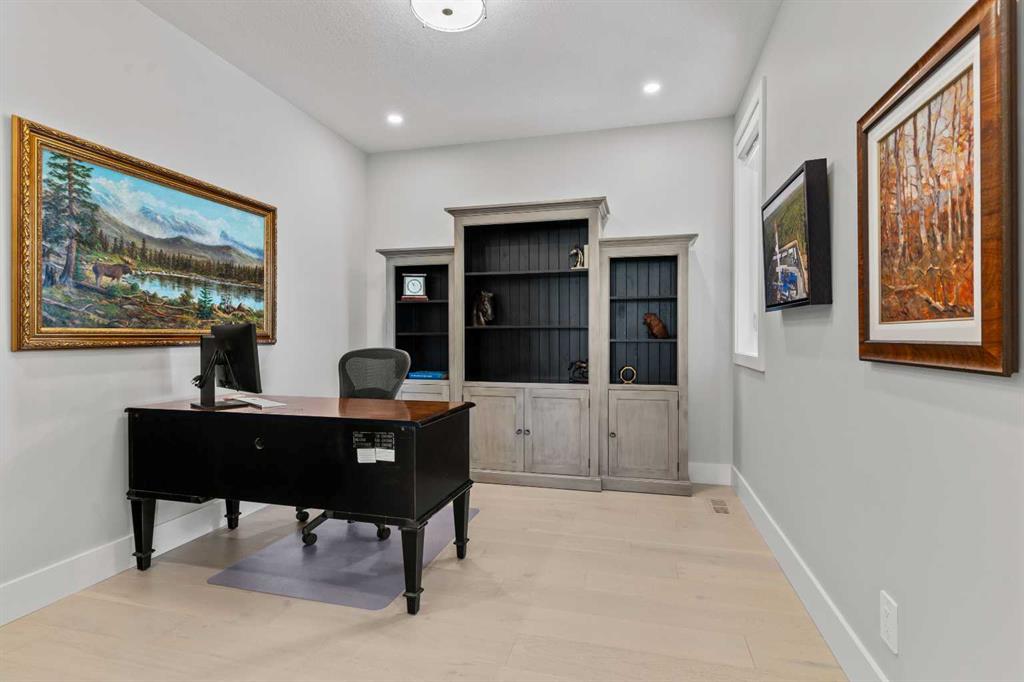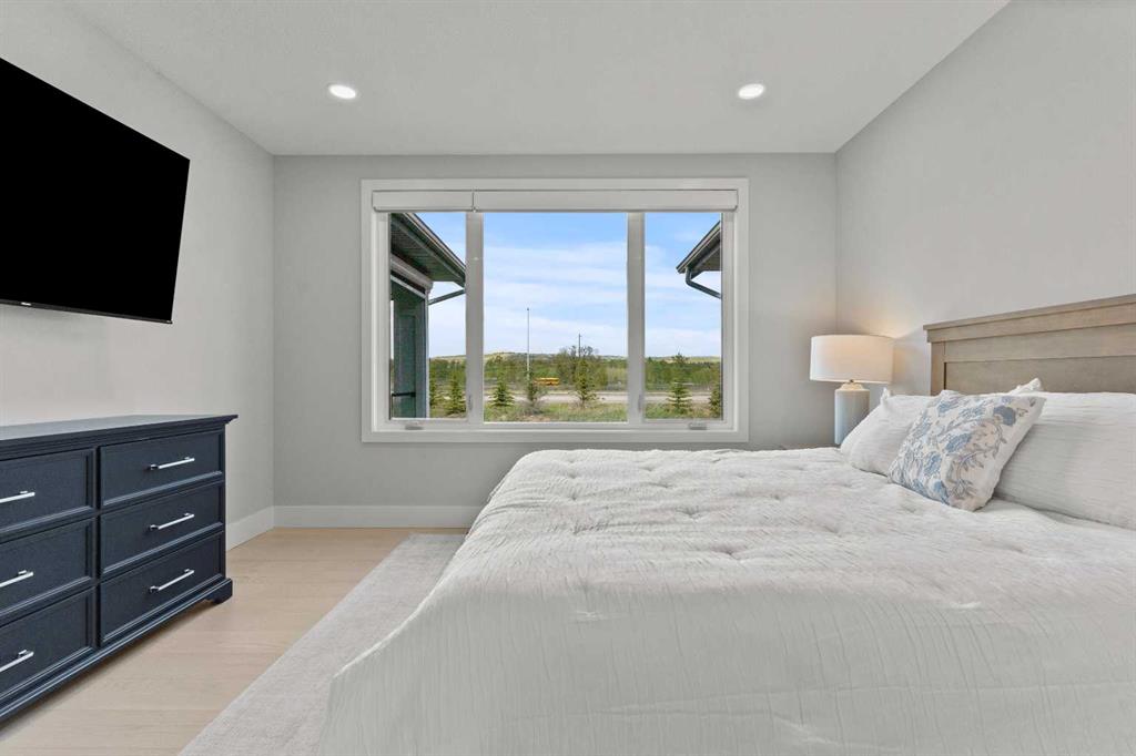 4 BEDROOMS | 2 1/2 BATHROOMS | WALKOUT VILLA | 3,194 SQ FT OF LIVING SPACE | HEATED DOUBLE ATTACHED GARAGE | OPEN LAYOUT | Welcome to this beautifully appointed walkout bungalow in the exclusive community of Swift Creek close to Elbow Valley, offering 3,194 sqft of refined living space with 4 bedrooms and 2.5 bathrooms. Nestled in a quiet cul-de-sac with no neighbours behind, this semi-detached luxury home offers privacy, functionality, and designer touches throughout. The large windows throughout the home bring in an abundance of natural light. The main floor features high ceilings, gorgeous hardwood floors, and a bright open-concept layout. The gourmet kitchen is the focal point of the space with quartz countertops, custom cabinetry, a gas cooktop, double oven, and expansive island, perfect for hosting friends and family. The spacious living room centers around a gas fireplace and flows effortlessly into the dining area and gourmet kitchen. Step outside to the upper composite deck complete with bbq gas line and custom remote controlled privacy blinds, ideal for enjoying the outdoors in comfort and uninterrupted. The primary retreat features automated Hunter Douglas privacy blinds, a generous walk-in closet with built-ins, and a spa-like 5-piece ensuite with heated floors, soaker tub and dual vanity. A stylish powder room, office, and spacious laundry room with storage complete the main floor. Enjoy the convenience of entering through the mudroom off the heated double attached garage. The walkout basement is fully finished and includes a large recreation room with custom built-in wet bar with granite countertop, three additional spacious bedrooms with large closets, a full 4-piece bathroom, and an oversized storage room. Additional highlights include central air conditioning, 62 gallon hot water tank, and sump pump. For convenience, the home also includes hose bibs on the upper deck, lower deck and in the garage. Enjoy the ease of low-maintenance living with condo fees covering all exterior maintenance, snow removal, and lawn care. Located just minutes from Calgary’s west edge, this exceptional home offers the perfect blend of luxury, tranquility, and convenience. Book your showing today!