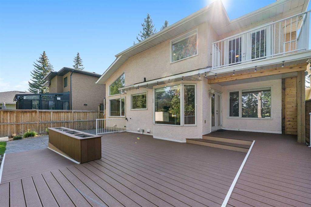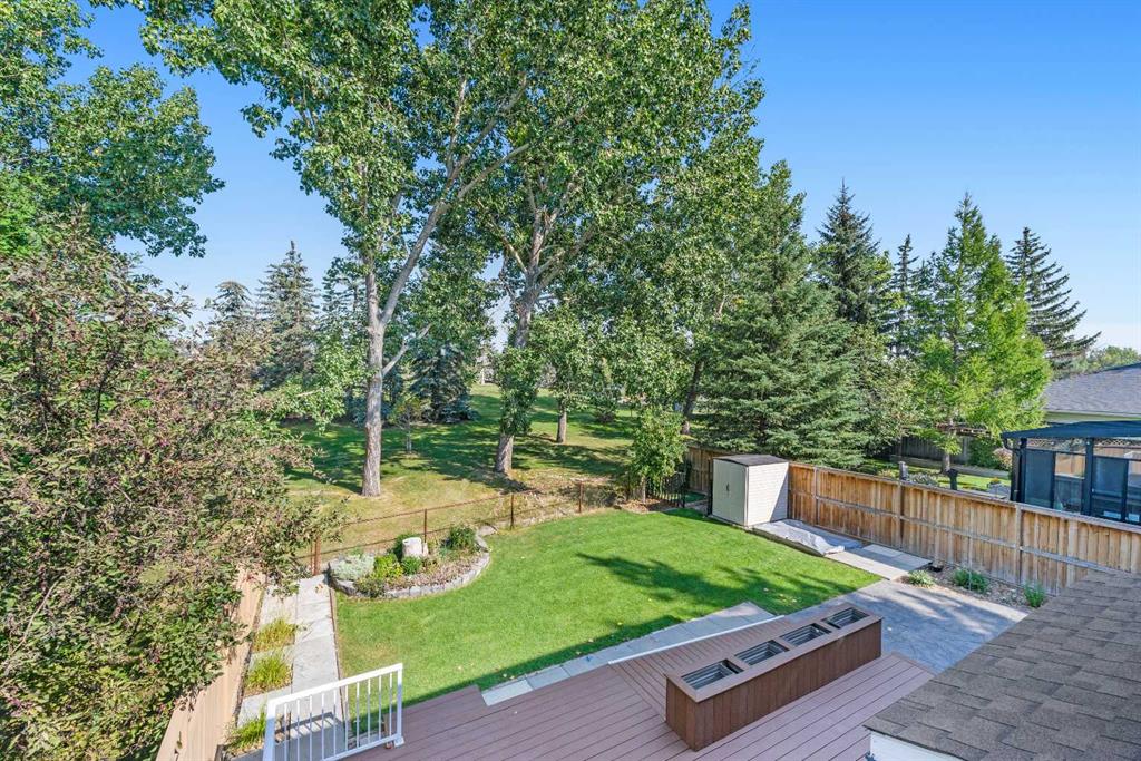 The outdoor living space is just as impressive as the interior. A massive composite deck provides ample space for entertaining or relaxing, while the lower patio offers additional options for outdoor living. The backyard is complete with a storage shed and a dedicated dog area, all overlooking the private green space directly behind the property. With no rear neighbours and mature trees framing the yard, you’ll enjoy both privacy and a direct connection to nature.