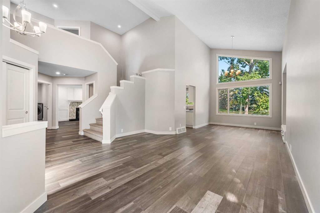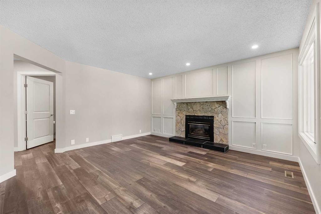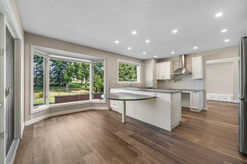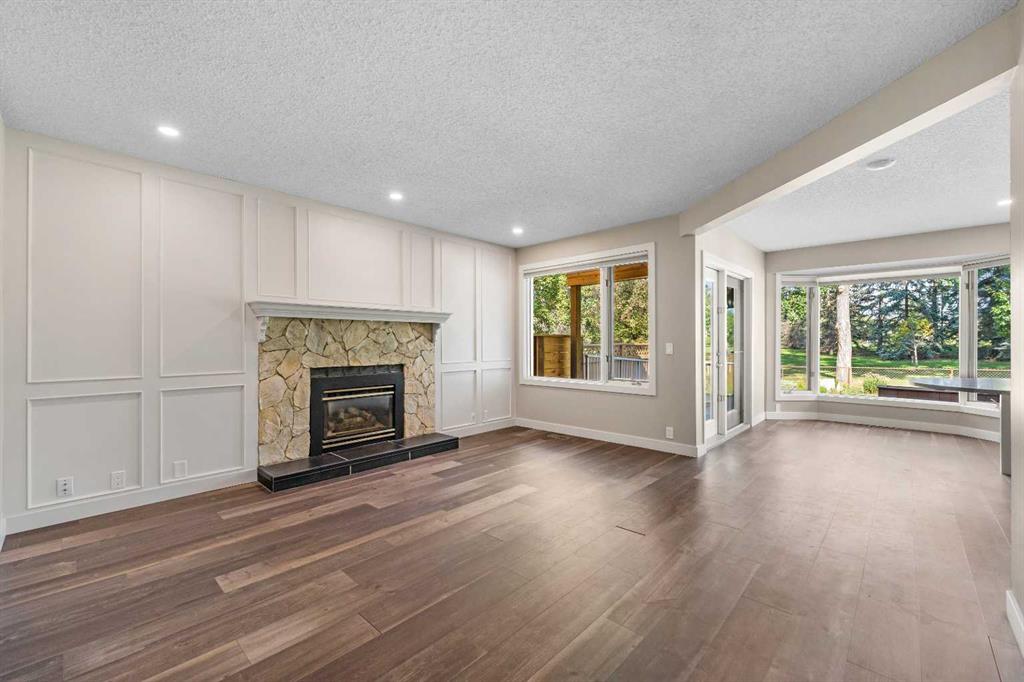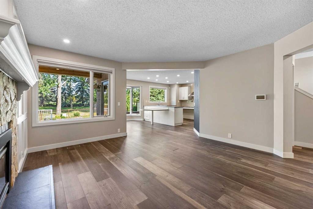 The main floor welcomes you with large, bright windows that flood the space with natural light and showcase the treed views. The open-concept design features a spacious living room, recessed lighting, and a beautiful stone-faced fireplace that serves as a warm and inviting focal point. The seamless flow into the kitchen and dining areas makes this home as functional as it is inviting.