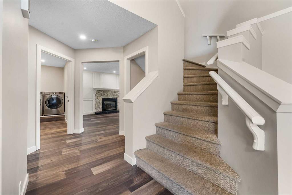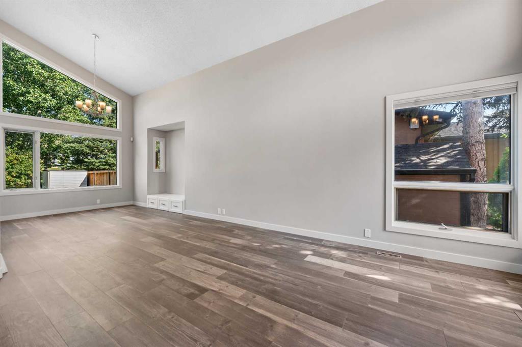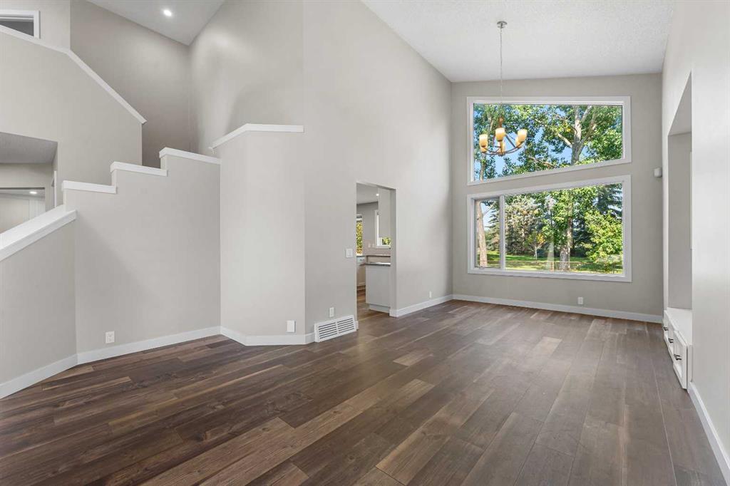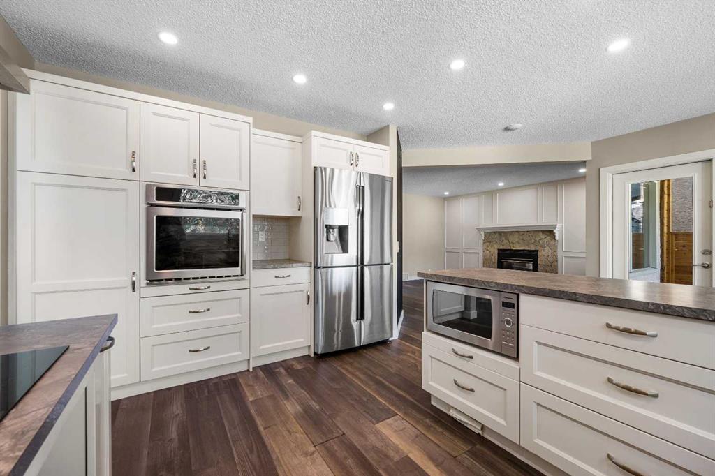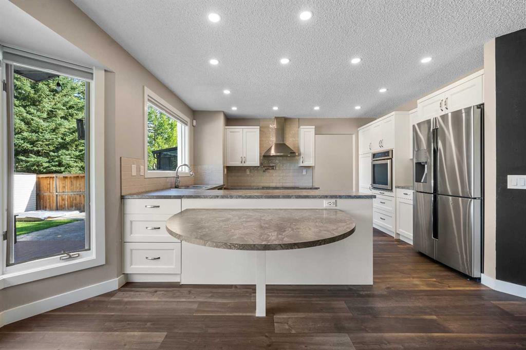 The main floor welcomes you with large, bright windows that flood the space with natural light and showcase the treed views. The open-concept design features a spacious living room, recessed lighting, and a beautiful stone-faced fireplace that serves as a warm and inviting focal point. The seamless flow into the kitchen and dining areas makes this home as functional as it is inviting.