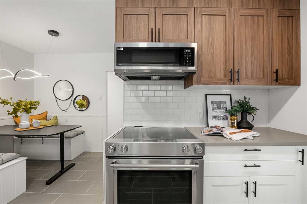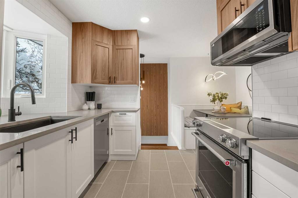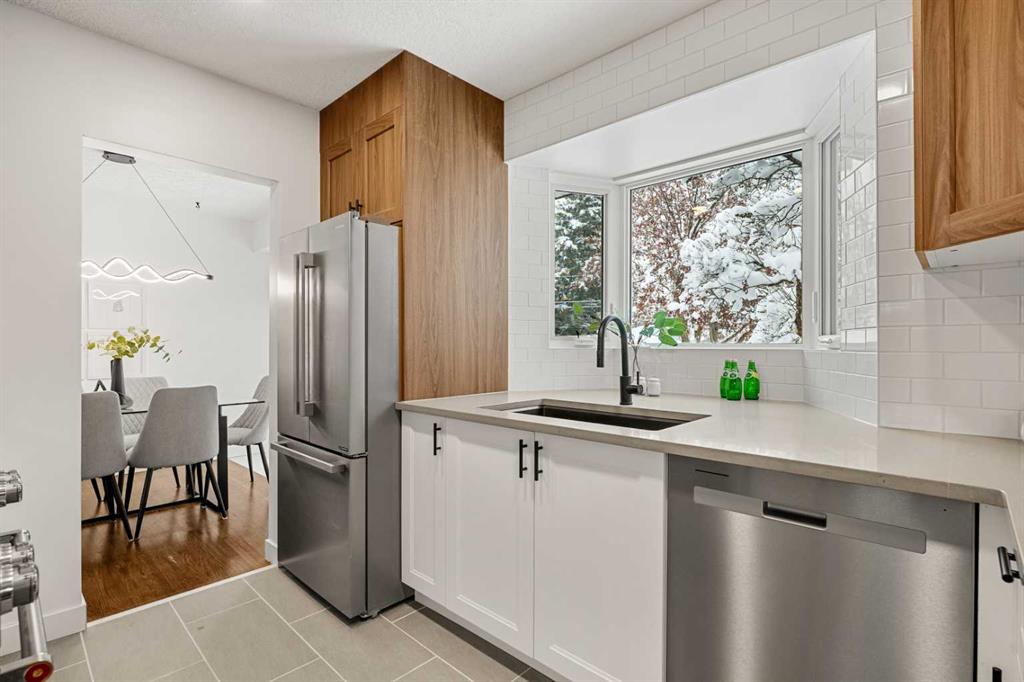 The main floor is bright and inviting, with hardwood flooring throughout and large windows that fill the space with natural light. The updated kitchen features new cabinets, imported quartz countertops, designer subway tile, stainless steel appliances, and a stunning view through the oversized windows. Three spacious bedrooms and a refreshed 4-piece bathroom complete the main level.