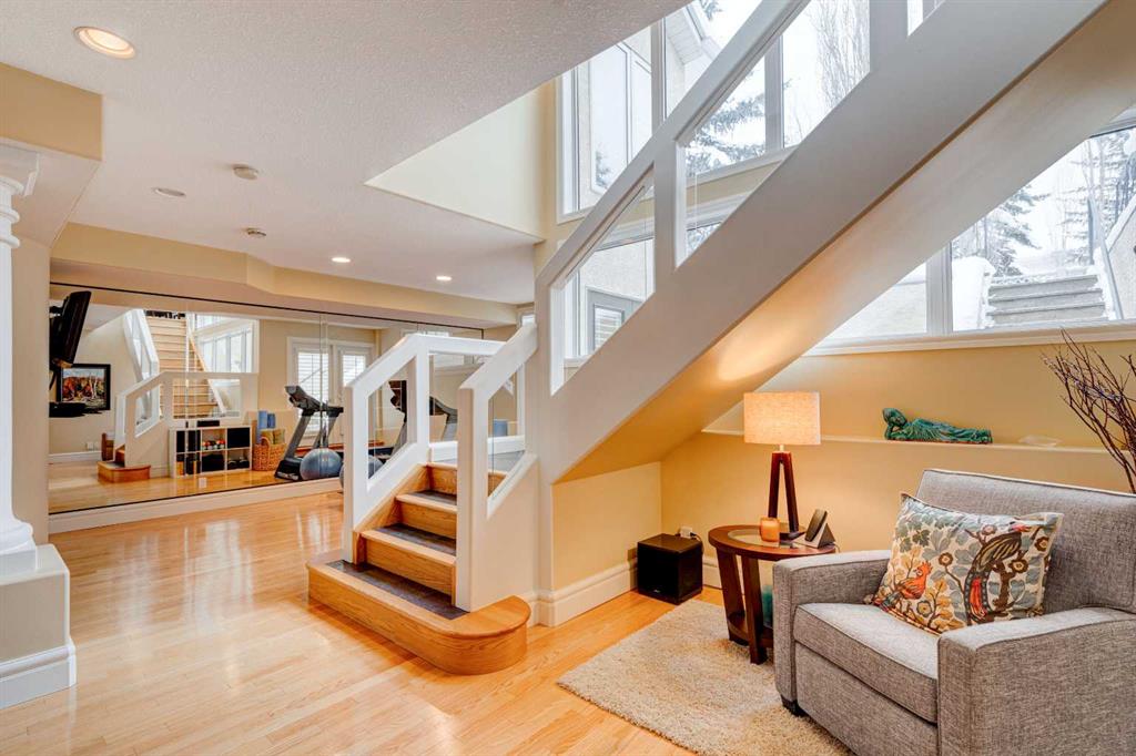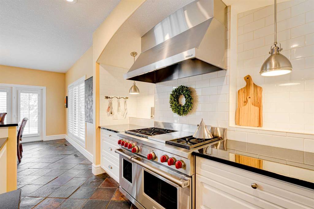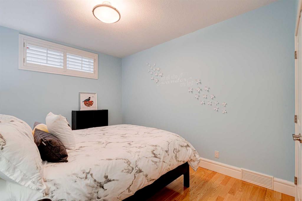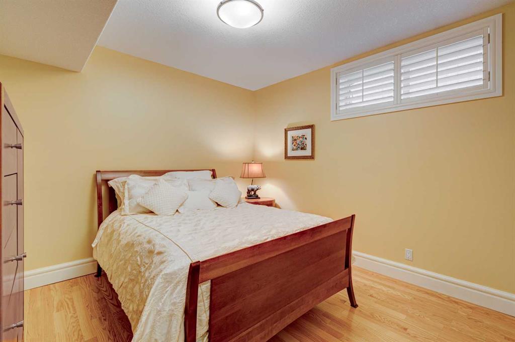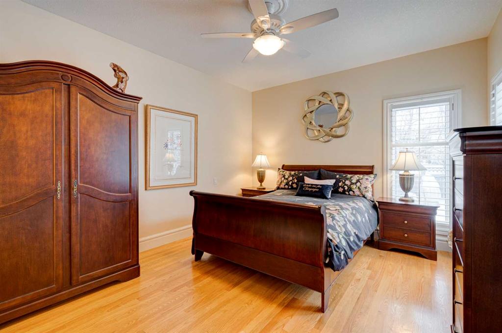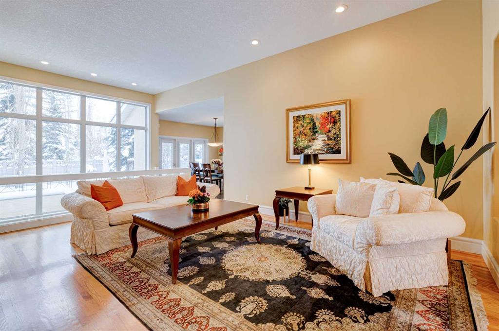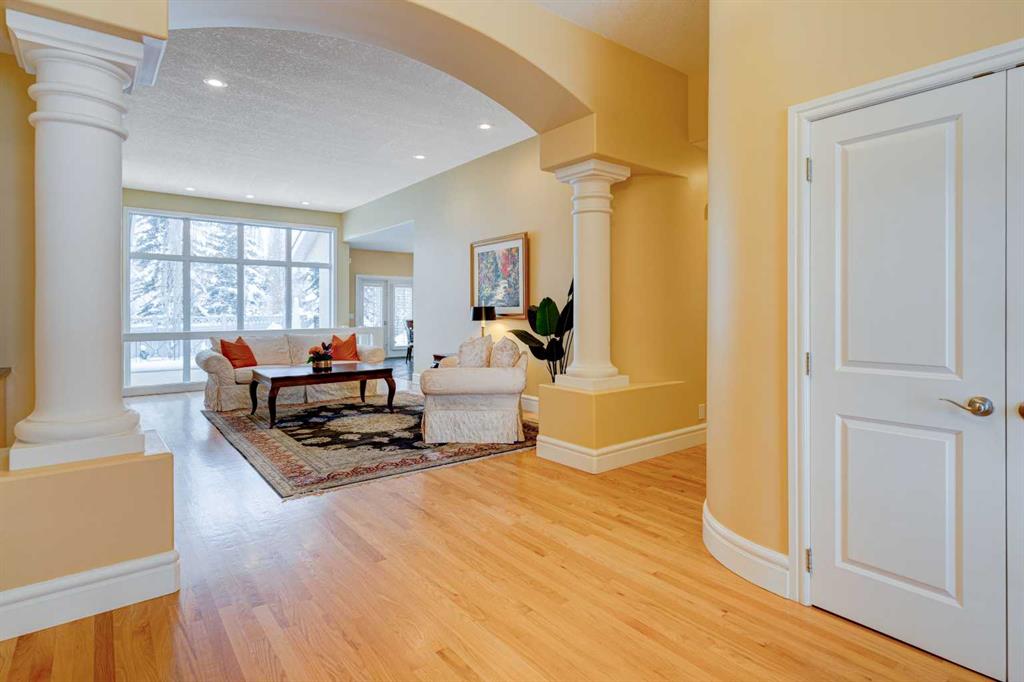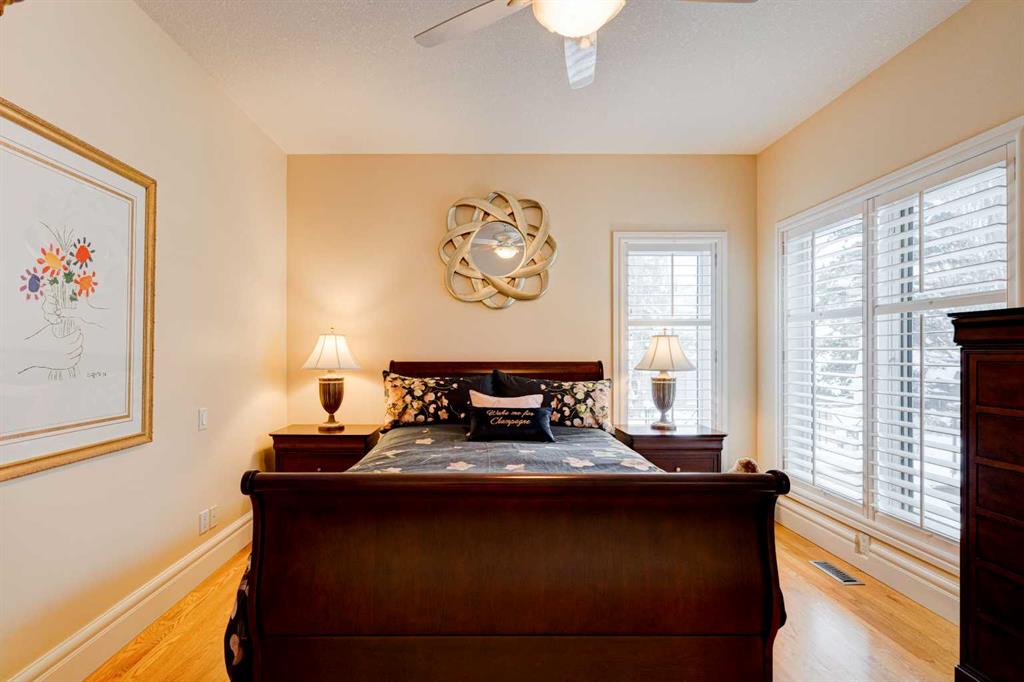 5 BEDROOMS | 3 BATHROOMS | BUNGALOW | 3,500 SQFT OF LIVING SPACE | HIGH CEILINGS | DOUBLE ATTACHED GARAGE | Welcome to this stunning bungalow on the sought after street of Schiller Crescent in the community of Scenic Acres. With over 3,500 sq ft of living space and 5 bedrooms, this home offers an abundance of room to live and entertain. You will be impressed with the attention to detail in the home with oak hardwood and slate floors, large wood baseboards, curved walls, 11′ high ceilings, and custom shutters throughout. Upon entering through the oak front door, you’ll be greeted by a large foyer inviting you into the spacious great room with views to the back yard. The great room is the focal point of the home and features unique columns, a granite surround fireplace, birds eye maple built in cabinetry and architectural curved walls and ceiling adding to the home’s grandeur. The gourmet kitchen is a chef’s dream, featuring custom cabinetry, granite countertops, breakfast bar, prep island, 48″ Wolf gas range, Subzero fridge, Subzero fridge drawers, and spacious pantry. Enjoy the spacious adjacent dining room, the perfect setting for hosting memorable gatherings. Head outside from the dining room to continue entertaining on the large stone patio with mature trees providing privacy all around you. The stunning master bedroom is an oasis of tranquility and features a 5-piece ensuite with heated floors, granite counters, custom cabinetry, Bain Ultra tub with self drying feature and upgraded plumbing fixtures. The main floor features a second bedroom that can also be used as an office with custom file drawers and shelves. Second bathroom features carrera marble 3-piece bath. The mud and laundry room contain ample storage and granite countertops. As you make your way downstairs, you will be further impressed with the additional amount of living space and the architectural details carried through the home. The family room is flooded with natural light from the large windows continuing from the floor above and opens onto a large exercise room with floor to ceiling mirrors. The basement also includes 3 additional bedrooms with closets and a 3-piece bathroom with luxurious steam shower with bench, heated floors and heated towel bars offering versatility and ample space for guests or growing families.The features of this home continue with vacuflo throughout, 2 furnaces, 2 hot water tanks, super sump pump with backup battery and rough ins for water softener and basement washer/dryer. The fully fenced backyard is an oasis to entertain with a large cedar deck, 2 stone patios, stone walkway, irrigation and hot tub. This beautiful home must be seen with its prime location within Scenic Acres, quick access to Stoney Trail, neighbourhood schools, Crowfoot Centre & the LRT. Book your showing today!
