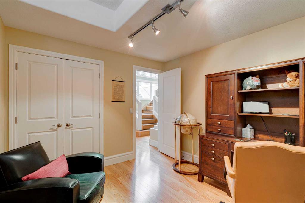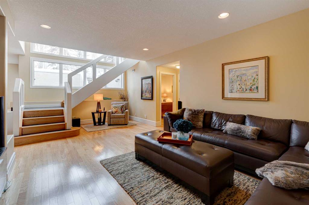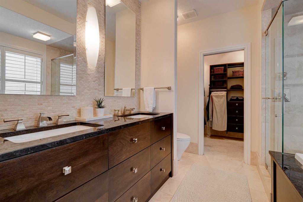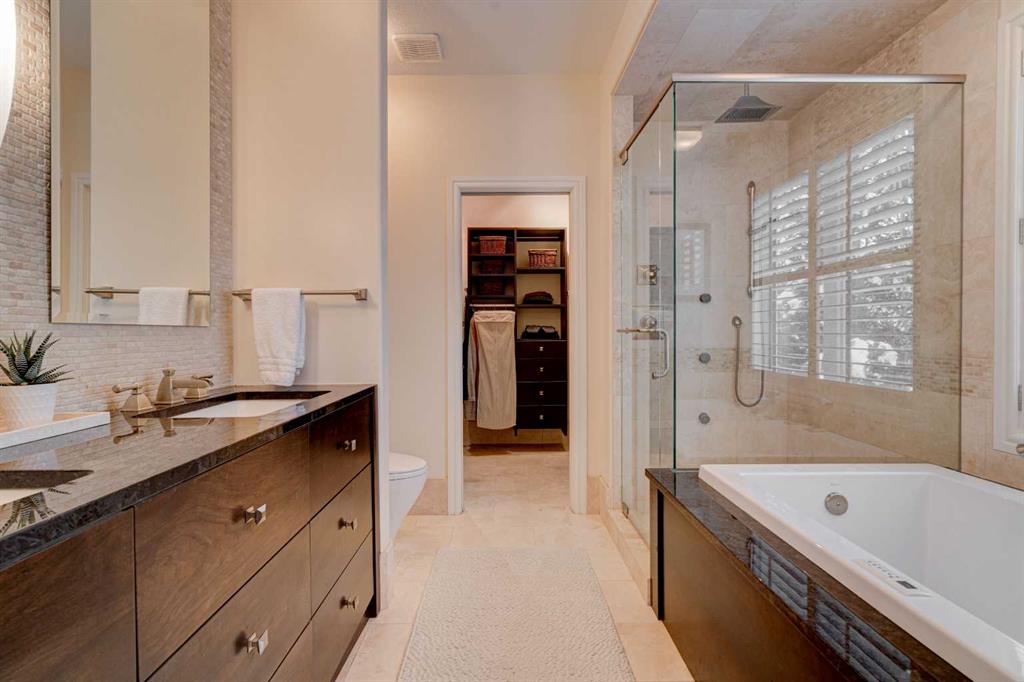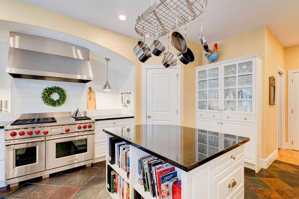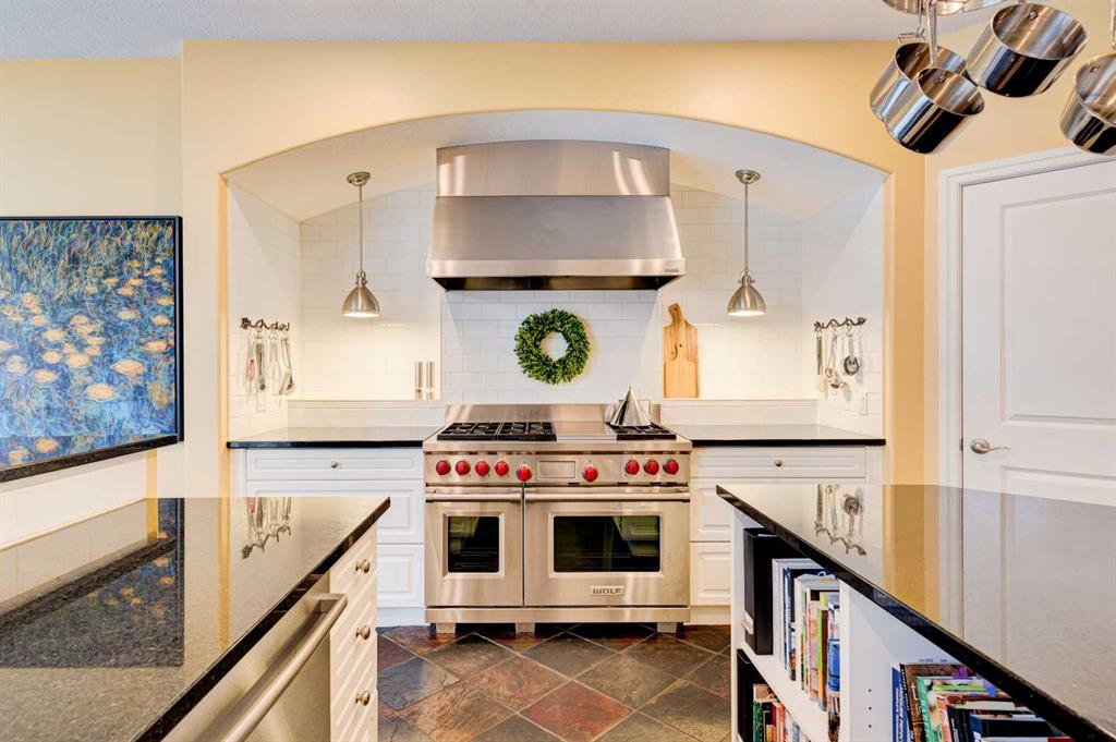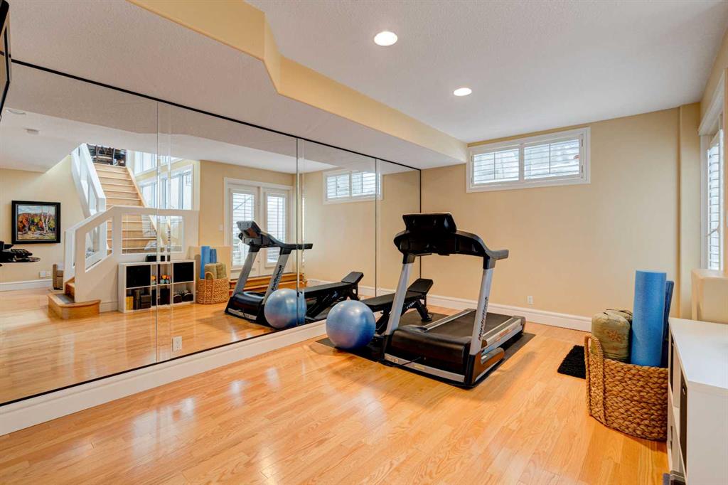 5 BEDROOMS | 3 BATHROOMS | BUNGALOW | 3,500 SQFT OF LIVING SPACE | HIGH CEILINGS | DOUBLE ATTACHED GARAGE | Welcome to this stunning bungalow on the sought after street of Schiller Crescent in the community of Scenic Acres. With over 3,500 sq ft of living space and 5 bedrooms, this home offers an abundance of room to live and entertain. You will be impressed with the attention to detail in the home with oak hardwood and slate floors, large wood baseboards, curved walls, 11′ high ceilings, and custom shutters throughout. Upon entering through the oak front door, you’ll be greeted by a large foyer inviting you into the spacious great room with views to the back yard. The great room is the focal point of the home and features unique columns, a granite surround fireplace, birds eye maple built in cabinetry and architectural curved walls and ceiling adding to the home’s grandeur. The gourmet kitchen is a chef’s dream, featuring custom cabinetry, granite countertops, breakfast bar, prep island, 48″ Wolf gas range, Subzero fridge, Subzero fridge drawers, and spacious pantry. Enjoy the spacious adjacent dining room, the perfect setting for hosting memorable gatherings. Head outside from the dining room to continue entertaining on the large stone patio with mature trees providing privacy all around you. The stunning master bedroom is an oasis of tranquility and features a 5-piece ensuite with heated floors, granite counters, custom cabinetry, Bain Ultra tub with self drying feature and upgraded plumbing fixtures. The main floor features a second bedroom that can also be used as an office with custom file drawers and shelves. Second bathroom features carrera marble 3-piece bath. The mud and laundry room contain ample storage and granite countertops. As you make your way downstairs, you will be further impressed with the additional amount of living space and the architectural details carried through the home. The family room is flooded with natural light from the large windows continuing from the floor above and opens onto a large exercise room with floor to ceiling mirrors. The basement also includes 3 additional bedrooms with closets and a 3-piece bathroom with luxurious steam shower with bench, heated floors and heated towel bars offering versatility and ample space for guests or growing families.The features of this home continue with vacuflo throughout, 2 furnaces, 2 hot water tanks, super sump pump with backup battery and rough ins for water softener and basement washer/dryer. The fully fenced backyard is an oasis to entertain with a large cedar deck, 2 stone patios, stone walkway, irrigation and hot tub. This beautiful home must be seen with its prime location within Scenic Acres, quick access to Stoney Trail, neighbourhood schools, Crowfoot Centre & the LRT. Book your showing today!