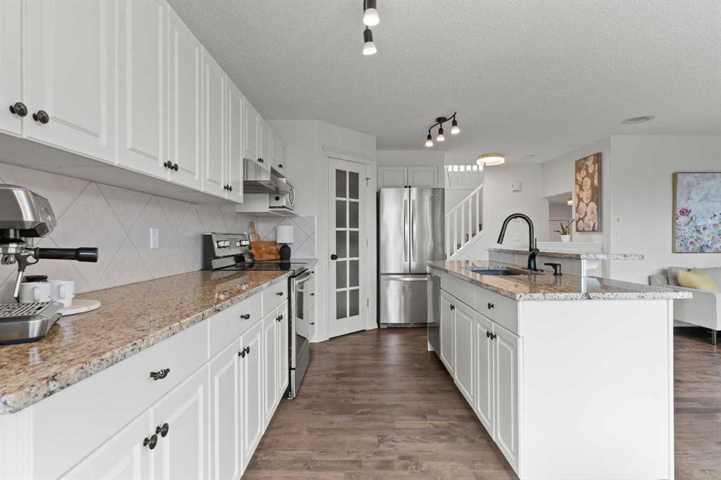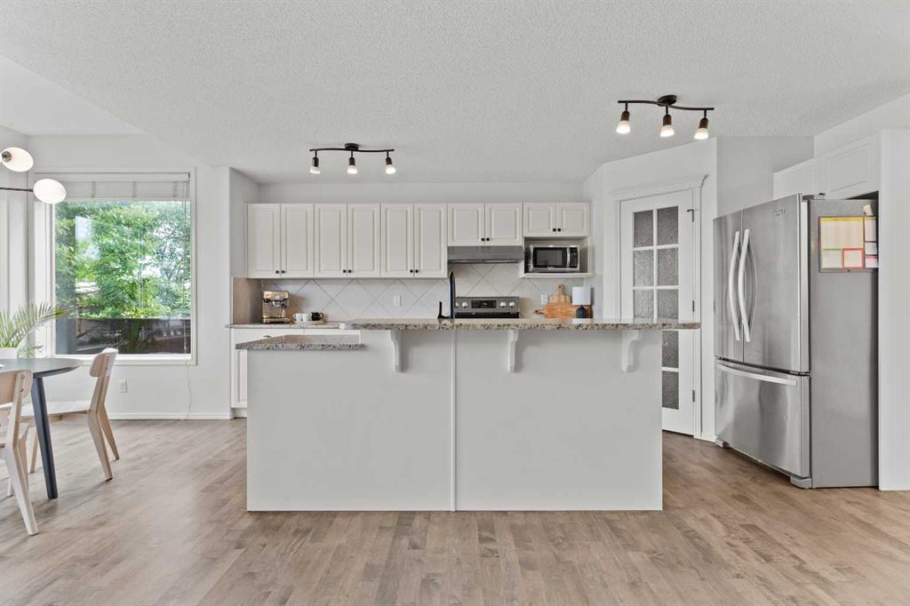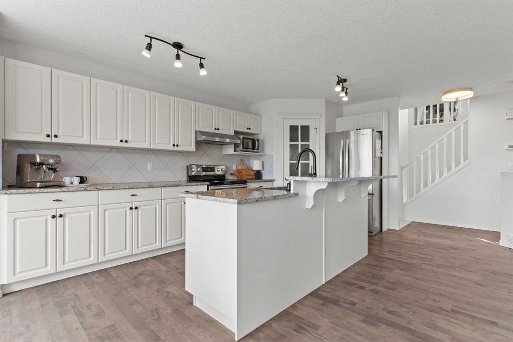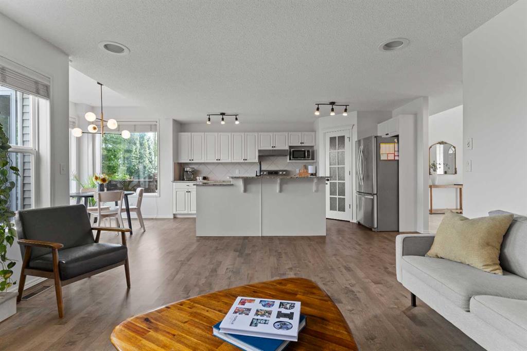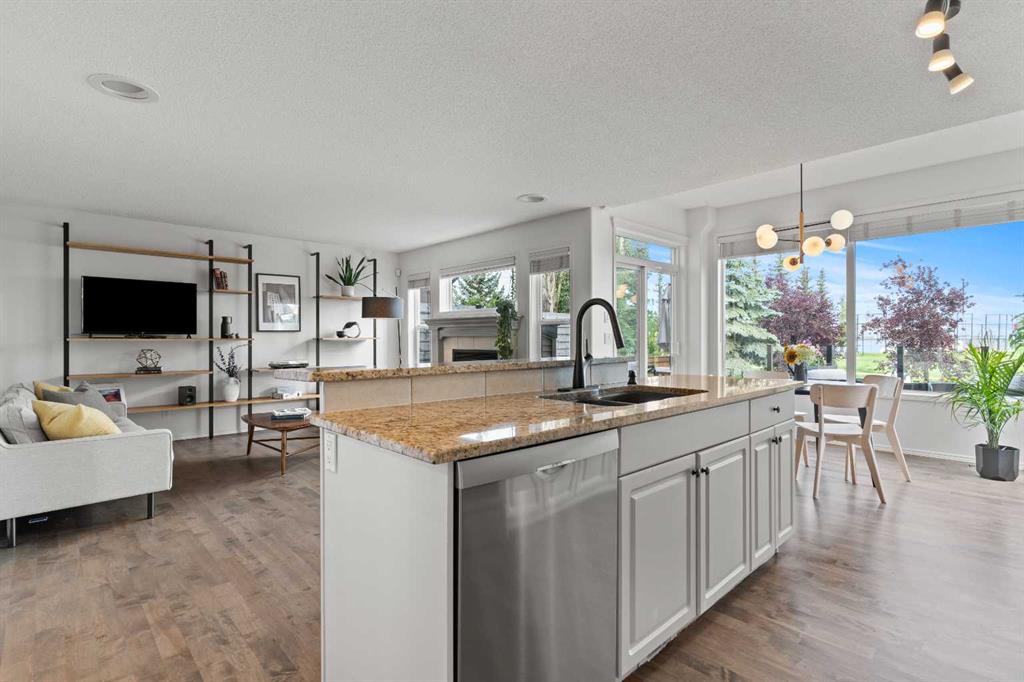 3 BEDROOMS | 2 1/2 BATHROOMS | 2-STOREY | 1,781 SQFT | DOUBLE ATTACHED GARAGE | BACKS ONTO GREEN SPACE | LANDSCAPED OASIS | Welcome to this beautifully maintained family home in the heart of New Brighton, offering 1,781 sqft of bright and functional living space, freshly painted throughout and thoughtfully designed for comfort and style. Perfectly positioned on a landscaped lot backing onto a park with no neighbours behind, this home blends privacy, convenience, and community living. Step inside to an open concept main floor with refinished hardwood flooring and an abundance of natural light. The spacious kitchen boasts granite counters, a large island with breakfast bar, convenient pantry, and plenty of cabinet and counter space. The dining area, surrounded by windows, opens onto a custom-built composite deck (2021) with BBQ gas line, outdoor speakers, and over 350 sqft of space to relax or entertain. Just off the kitchen, the inviting living room features a statement shelving unit and a cozy gas fireplace, creating a refined yet welcoming atmosphere for family gatherings or entertaining. The main floor also features a spacious laundry room and powder room. Upstairs, you’ll find a generous bonus room with vaulted ceilings, perfect for movie nights or to use as a play area. The serene primary suite is the perfect spot for relaxation with a walk-in closet and 4-piece ensuite with soaker tub. Additionally, two bedrooms and a 4-piece bathroom complete this level. The landscaped backyard is truly an oasis, complete with mature trees, raised garden beds, and direct access to the park. Additional features of the home include central air conditioning, central vacuum, new hot water tank (2025) and a built-in sound system throughout the home. The basement is a blank canvas for you to create your own space. Located just steps from New Brighton Elementary School, the community centre, outdoor rink, splash park, tennis courts, and multiple playgrounds, this home offers an unmatched family lifestyle. Book your showing today!
