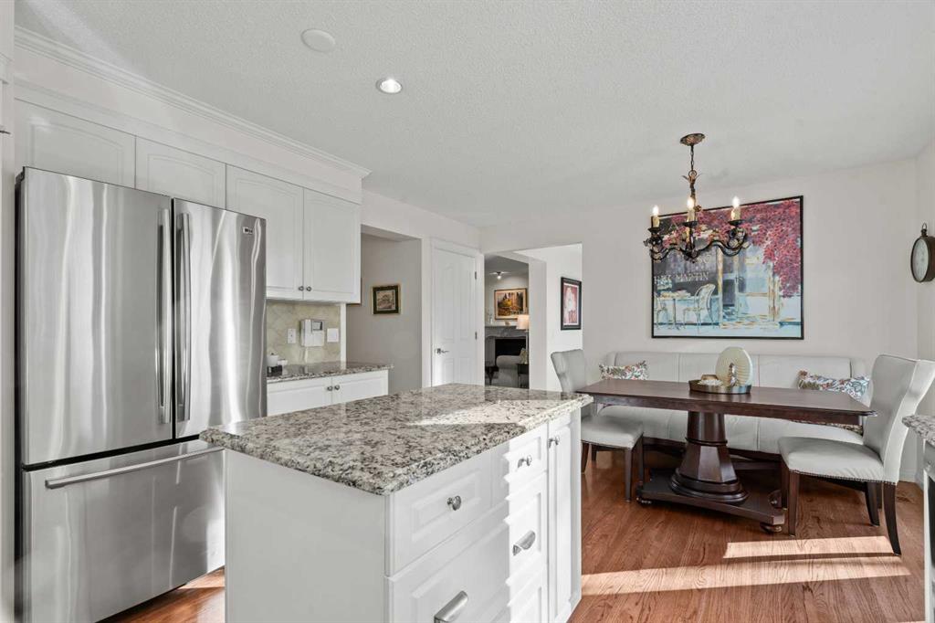 Step inside to a welcoming and spacious front foyer. The main floor features a formal living room with a gas fireplace, a spacious dining room for entertaining, and a functional kitchen with eating area. The kitchen features granite countertops, central island, hot water on demand, full tile black splash, a walk-in pantry, and opens through french doors onto a large elevated Duradek balcony with glass and aluminum railings (replaced in 2024) and feature pergola, perfect for enjoying morning coffee or summer evenings. A cozy main floor office, powder room, and a mudroom with laundry off the double attached garage complete the level.