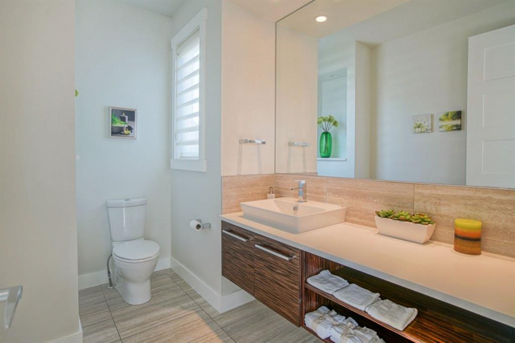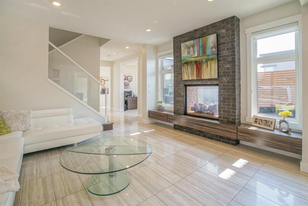 Walking through the entrance of the front foyer, you’re greeted with a large walk -in closet and spacious ½ bath with floating vanity. The kitchen showcases features such as, a quartz waterfall island and eating bar, cultured stone backsplash, and all SS Viking appliances. The great room features a beautiful full-brick double-sided fireplace (shares with the outside private patio) and a floating hearth. With pristine interior finishing’s, saturated with white cabinetry, fresh wall colours, and distinguished woodwork – this home has everything you have ever “dreamed” of!