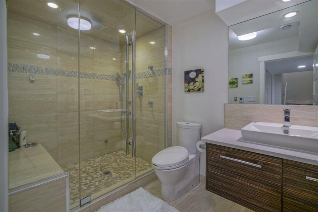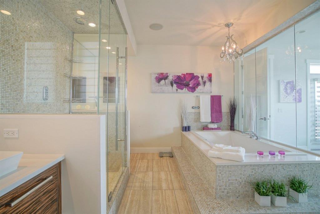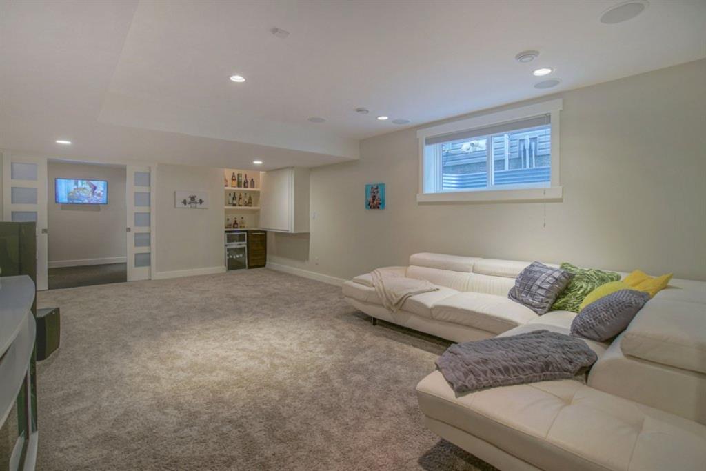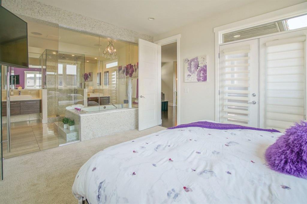 Bringing you into the upper level is maple staircase with glass side walls. The master bedroom is a true retreat featuring 10mm of glass looking into the ensuite with oversized shower and soaker tub. Two more generous sized bedrooms, family room and 4 piece jack and jill bath finish off this floor. The basement has been fully developed to mimic the main floor carrying on with the design and feel of a dream home. A rec room with a wine bar, extra large 4th bedroom with a walk in closet and a flex room. The spa like bathroom has a heated floor, full bodied jets and a water proof speaker in the steam shower, making this home the perfect dream oasis.